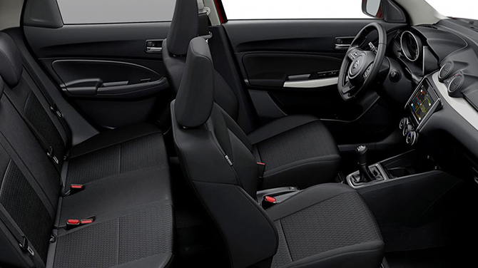 The new Swift doesn’t skimp on style either –complete with sculpted bumpers, a sporty roof spoiler and 16‑inch alloy wheels. It’s available in your choice of 12 different colour combinations too! Inside, the comfy cabin features a dual tone colour scheme with wraparound styling for a real premium feel.